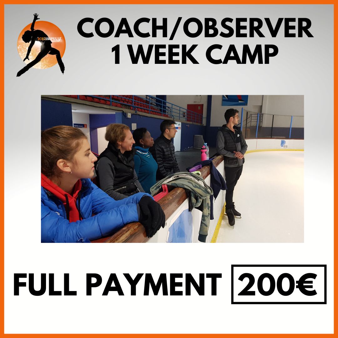 -1 Week Camp for Coach in Training / Coach Observer (includes all access to Ice-sessions, Dance, Physical training & Pilates, Video Analysis + Extra)